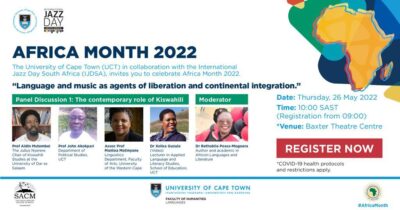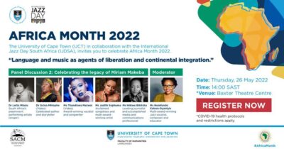 The University of Cape Town (UCT) in collaboration with the International Jazz Day South Africa (IJDSA), invites you to celebrate Africa Month 2022.