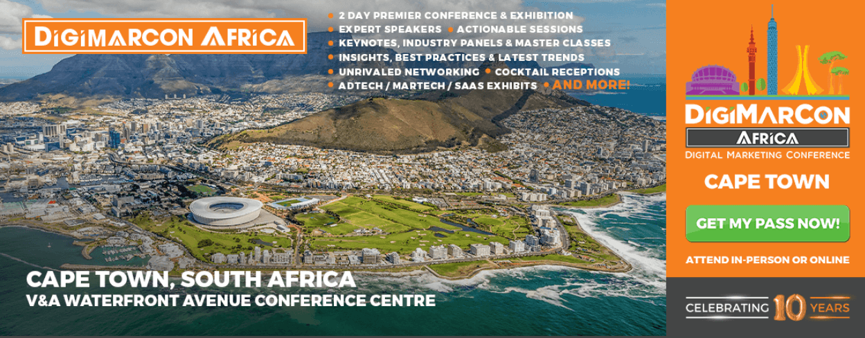 A 6ª DigiMarCon Africa anual, a principal conferência e exposição de marketing digital, meios de comunicação social e publicidade em África, regressa a 16 e 17 de outubro de 2024 ao V&A Waterfront Cape Town Avenue Conference Venue na Cidade do Cabo, África do Sul. Junte-se aos seus pares, pessoalmente ou online, para 2 dias repletos de melhores práticas de marketing digital, últimas tendências, soluções práticas, estratégia e networking, e veja também a próxima geração de tecnologia e inovação; Internet, Mobile, AdTech, MarTech & SaaS Technology.